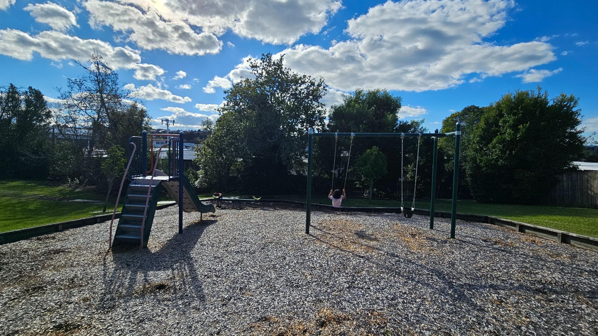 Calling Celeste Reserve Playground a full playground might be a little generous. It is really more of a grassy patch with a slide and a swing tucked into it. But that does not make it unimportant. Hidden quietly in a corner of Wairau Valley, it feels like one of those neighbourhood spots built for the kids who live just down the road.