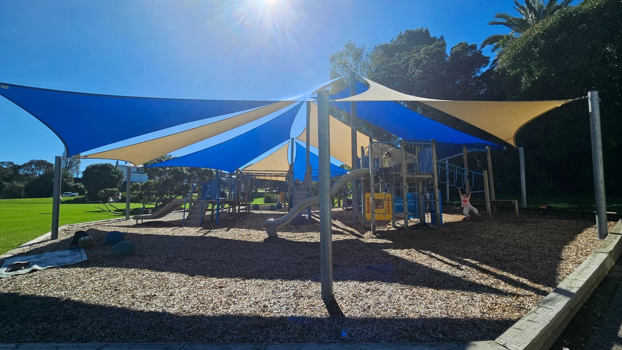 The first thing you notice is the shade. The entire playground is covered, which sounds like a small detail until you arrive on a bright Sunday and realize you can stay as long as you like without anyone overheating. We visited on a sunny afternoon, and it made all the difference. Full marks for that alone.