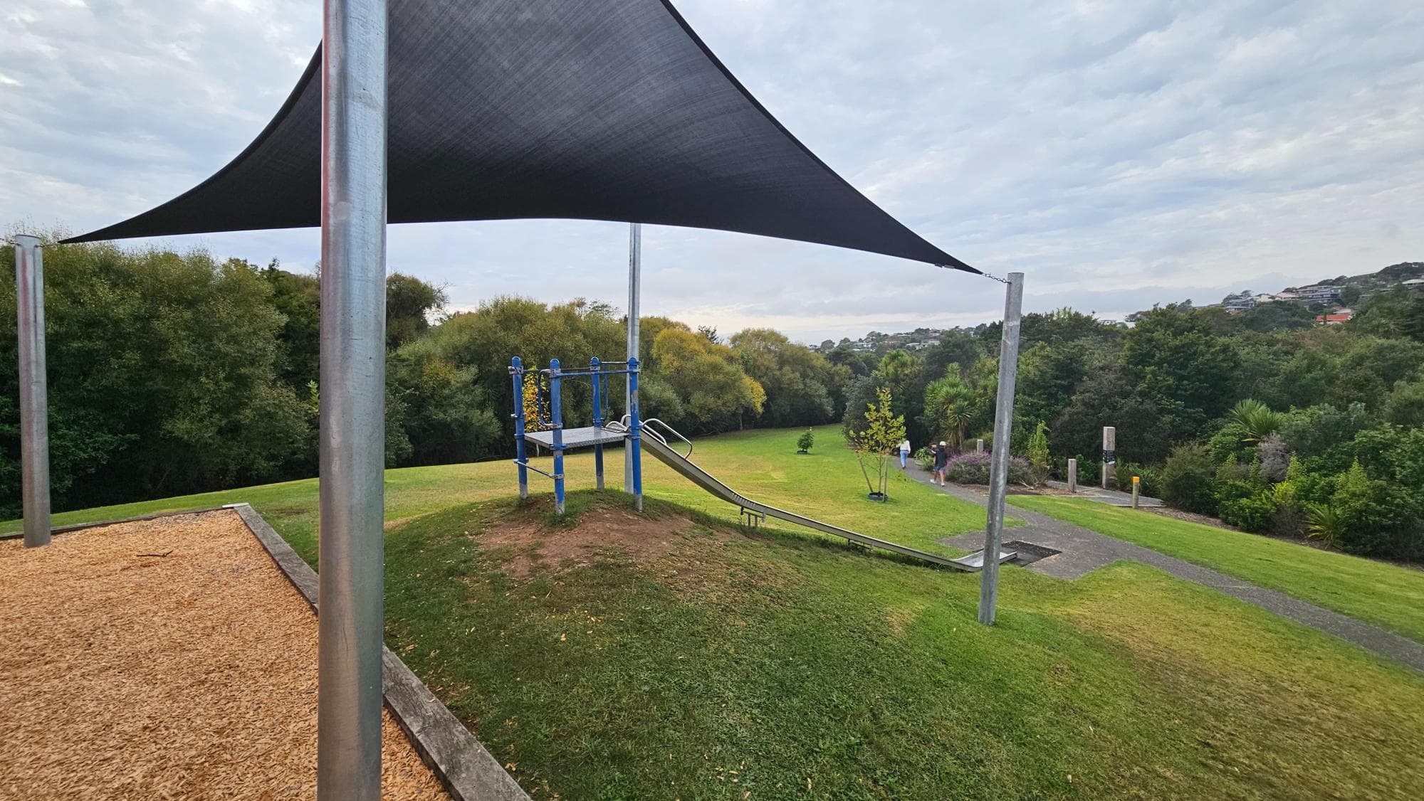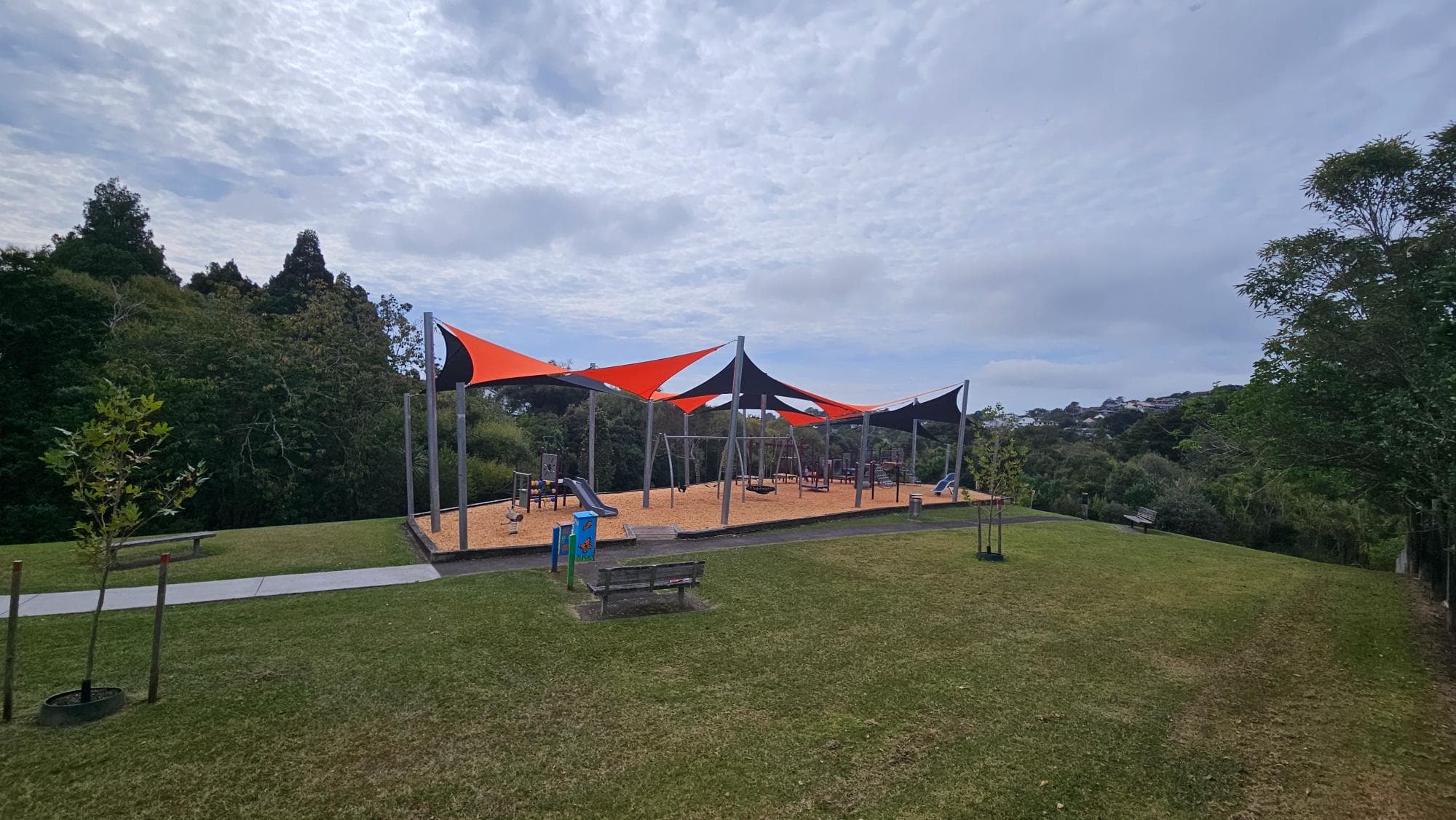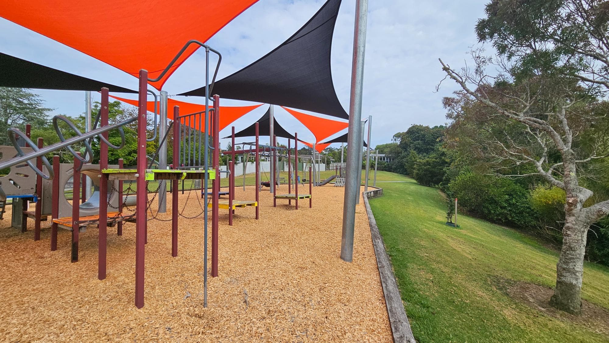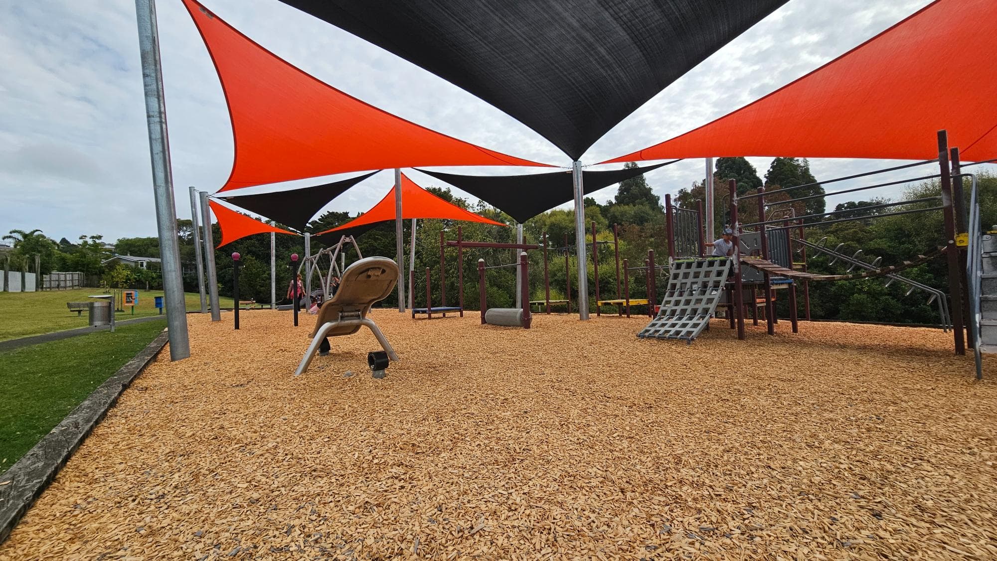 A relaxed, spacious playground within a lovely park setting. There's a duck pond, a mini library, and a good mix of equipment — bigger slides and monkey bars for older kids, smaller features for the toddlers. The overall vibe is safe and pleasant. The setting is slightly secluded, so just worth being a bit more aware in the evening.